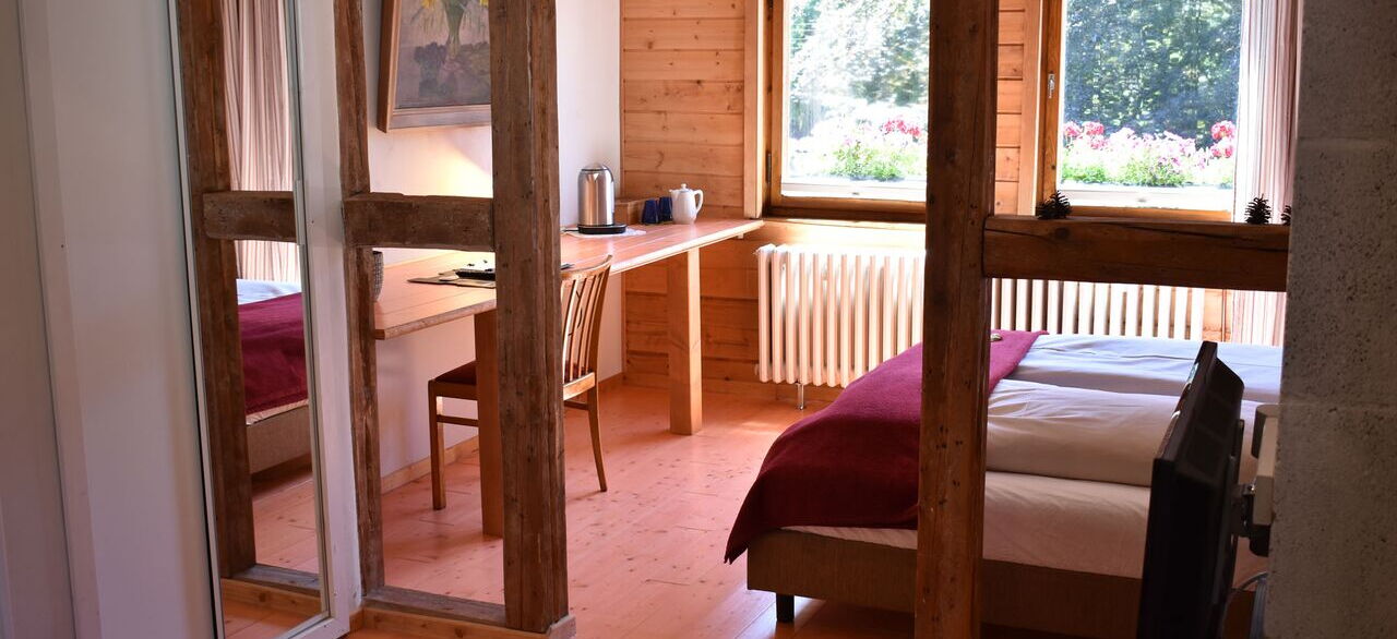 Unser Haus liegt ruhig am Waldrand, fernab vom Verkehr, aber dennoch nur wenige Gehminuten vom Zentrum entfernt. Der große, naturbelassene Kirchgarten lädt zum Verweilen ein – hier beobachten Sie Vögel, genießen romantische Sonnenuntergänge oder hören dem Singen der Amseln zu. Vielleicht begegnen Sie auch Paul und Paula – unserem zutraulichen Taubenpärchen.