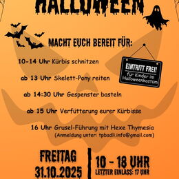 Halloween Fest im Tierpark mit Kürbisschnitzen, Geister basteln, Grusel-Buffet, wandernden Erschreckern, Pony Reiten & Grusel-Führung. Letzter Einlass 17 Uhr.