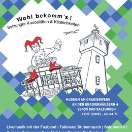 Schauvorführung Salz Sieden Eintritt: 7 Euro incl. Museumsbesuch, erm. 5 Euro für Schüler, Studenten und Inhaber der Gästekarte Bad Salzungen oder Bad Liebenstein, Kinder ab 6 Jahren 3 Euro.